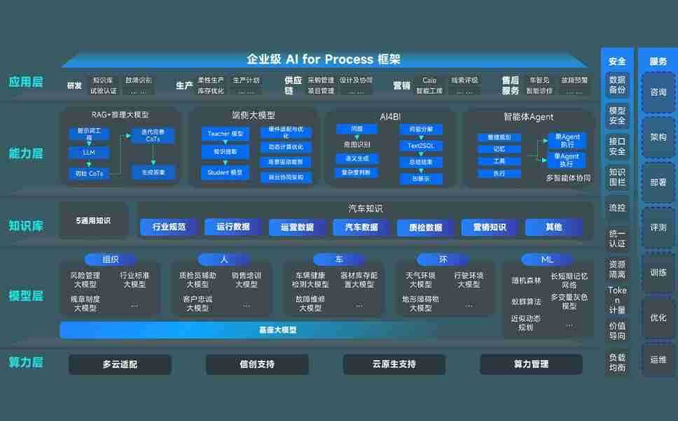 端到端的一站式AI工作空间深度融合了从企业战略规划到日常经营的全流程业务板块,,定向解决车企内部领域多、、、、部门多、、、链条长、、、场景碎片化等难题,,,,支持车企快速构建以AI为核心的生产力写作体系,,实现任务执行与AI能力的无缝集成与交互